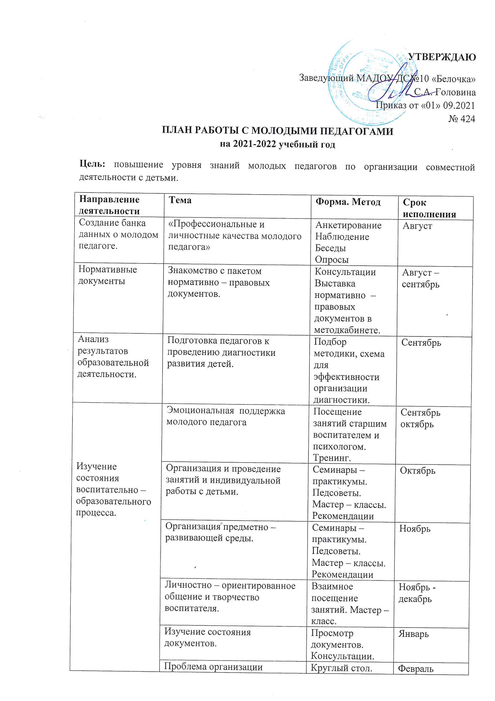 Приказ об организации школы молодого педагога