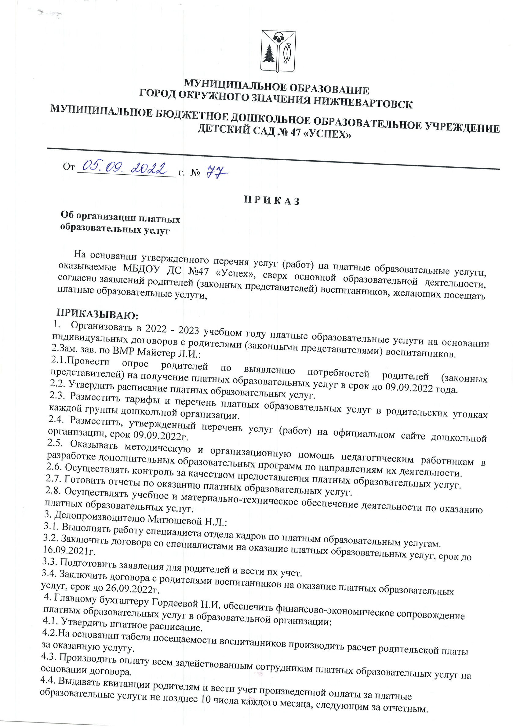 Приказ об организации платных услуг