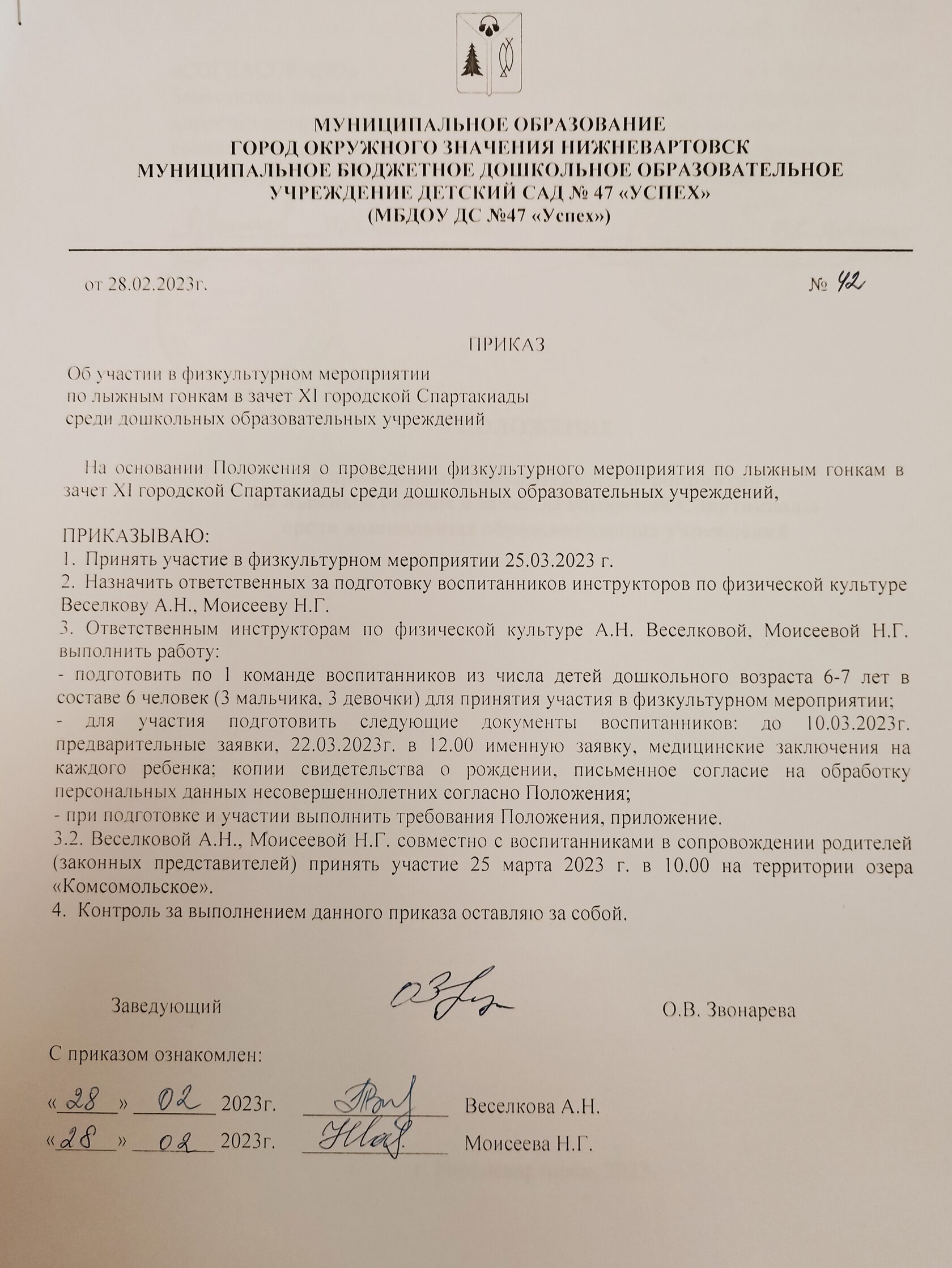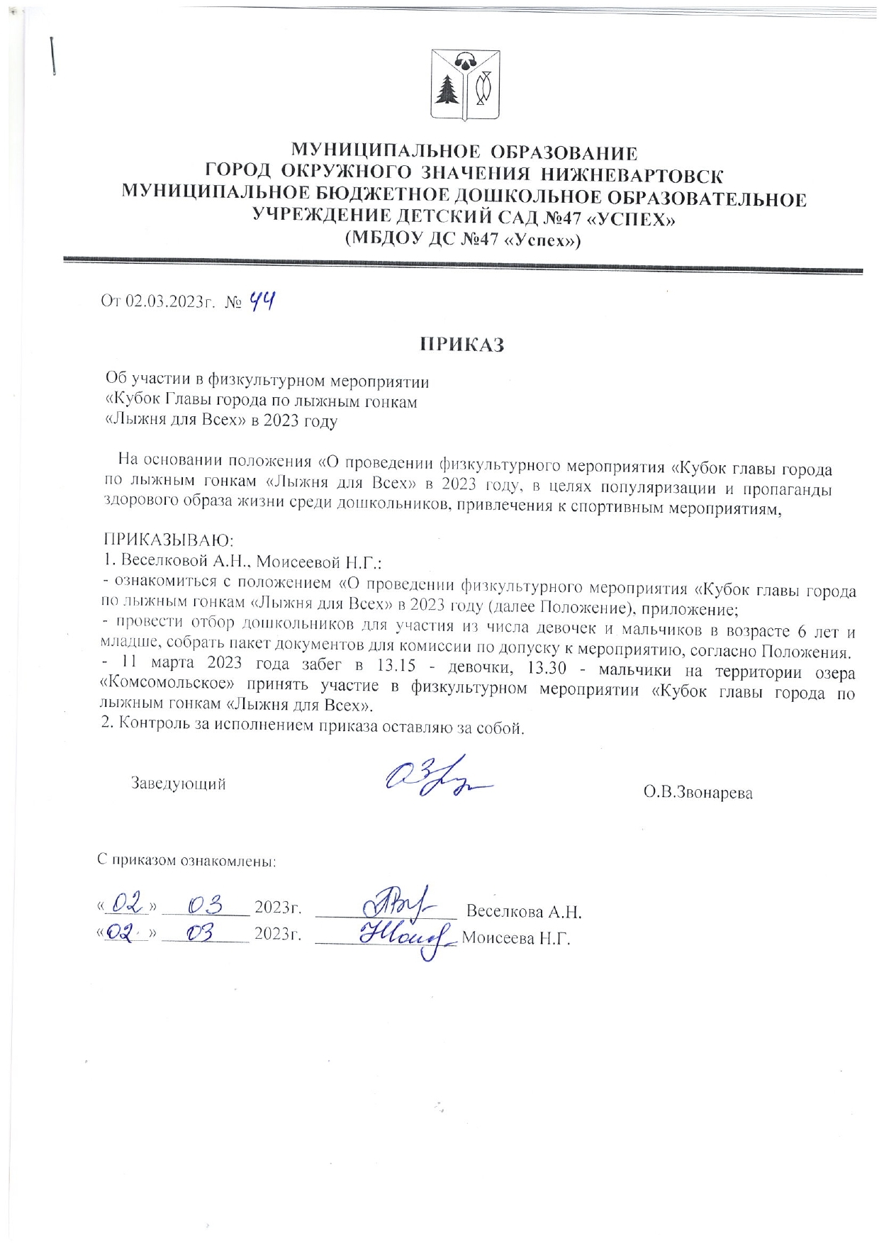 Приказ об участии в физкультурных мероприятиях по лыжным гонкам и "Лыжня для всех"