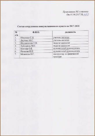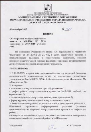 Приказ об открытии консультационного пункта