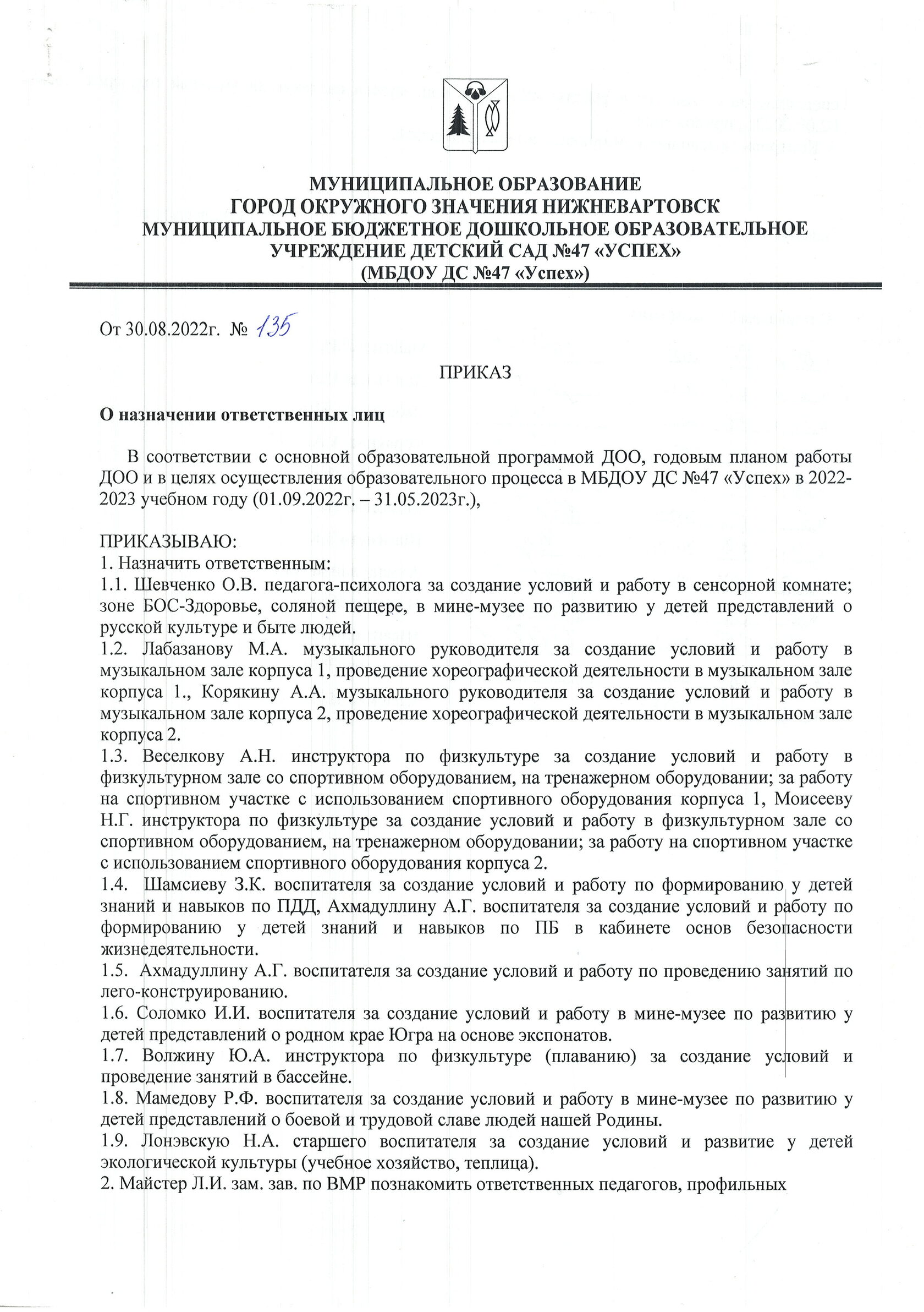 Приказ о назначении ответственных лиц