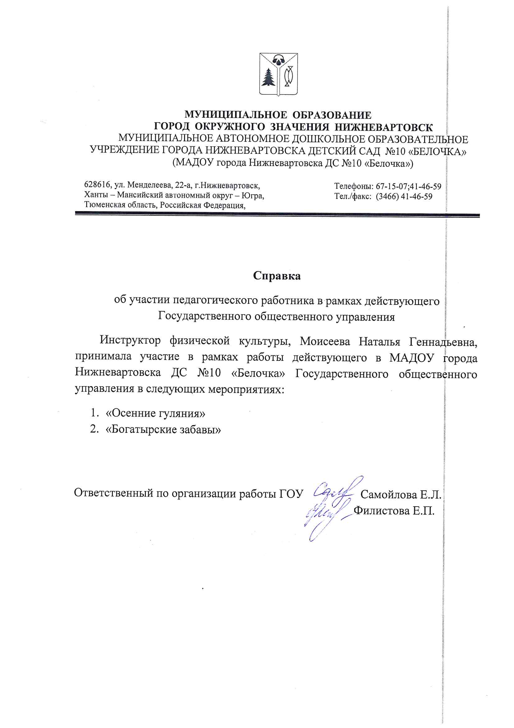Справка об участии в рамах работы ГОУ