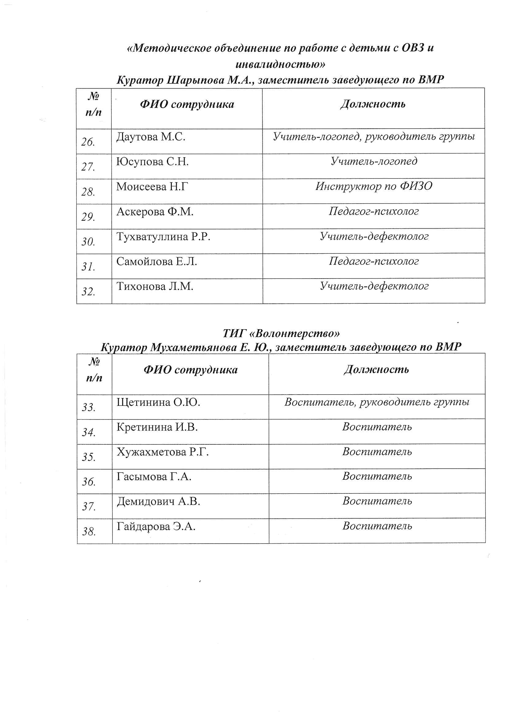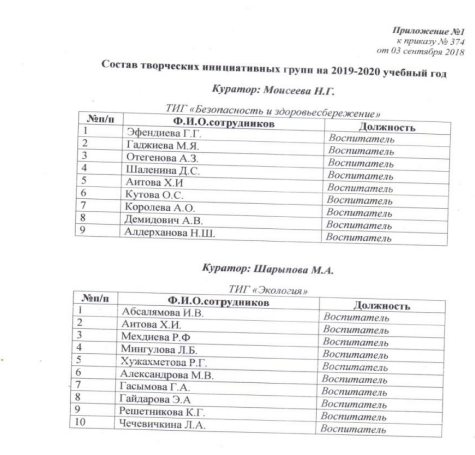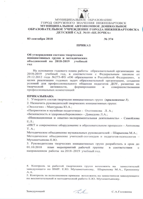 Приказ об утверждении состава ТИГ